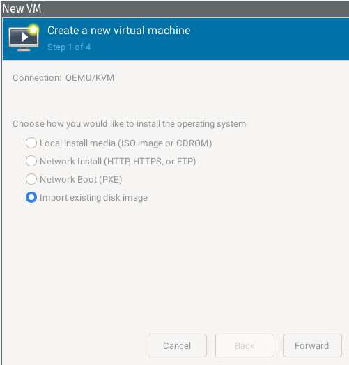 Option Import existing Disk Image wählen und auf Weiter.