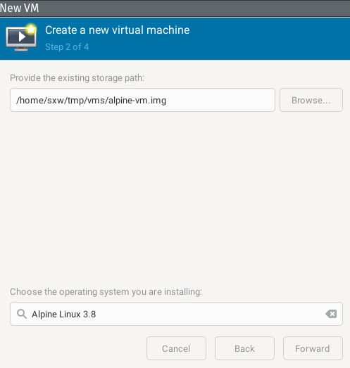 > qemu-img create -f qcow2 alpine-vm.img 4G