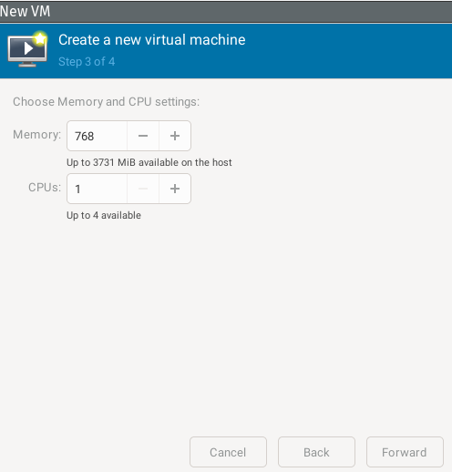 Speicher und Anzahl CPUs zuweisen.