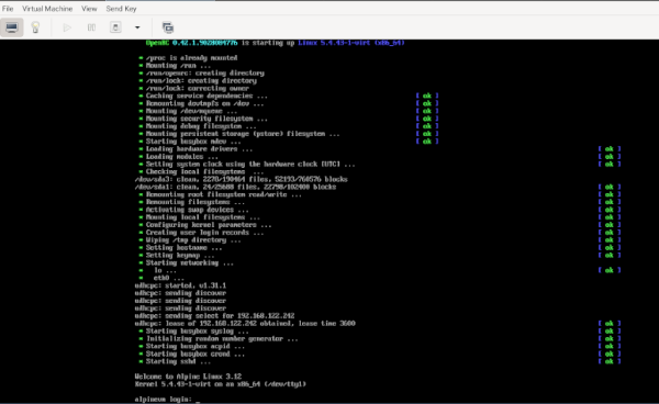> wget http://dl-cdn.alpinelinux.org/alpine/v3.12/releases/x86_64/alpine-virt-3.12.0-x86_64.iso